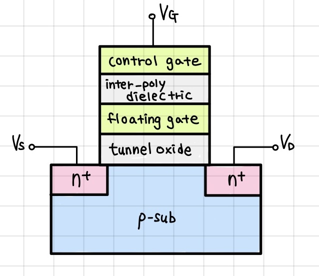 기본적인 floating gate flash memory cell의 구조는 아래와 같습니다.