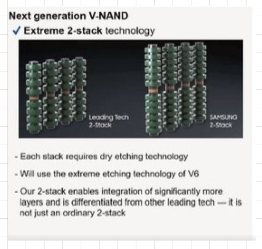 삼성전자는 24 4월 280~290단의 1Tb TLC 9세대 V낸드 양산을 시작했습니다. V낸드는 더블 스택 구조이고, SK하이닉스가 24년 11월 양산에 나선 321단 낸드는 트리플 스택 구조 입니다. 삼성전자도 400단대에서는 트리플 스택을 적용한다고 합니다.