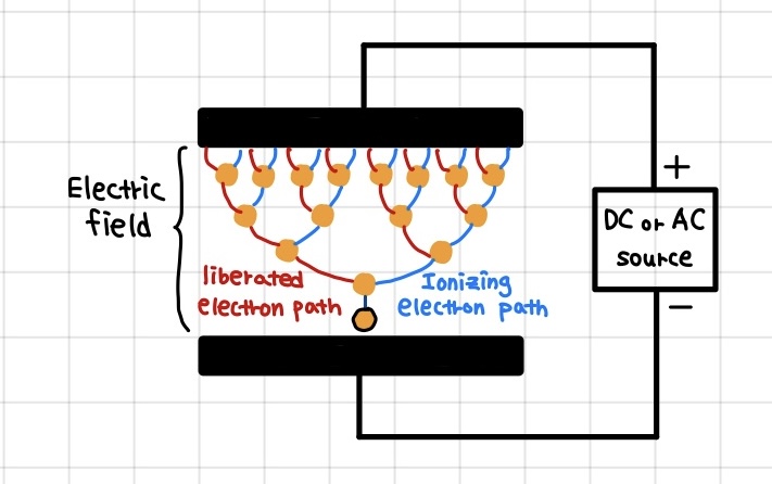 Plasma는 아래 그림과 같이 진공 상태 안에 특정 gas를 넣고 아주 높은 DC 혹은 AC 전압을 가해주어서 전자를 충돌시켜주어 형성합니다.