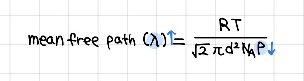 두 번째로는 mean free path를 키우기 위해서 입니다. Deposition 공정 등에서 reactive gas 입자들을 가속시켜 웨이퍼에 충돌시킨다거나 하는 단계들이 있는데요, 이때 직진성을 키우기 위해서입니다. Mean free path를 나타내는 수식은 아래와 같습니다. 여기서 P 압력을 낮추면 mean free path를 키울 수 있기 때문에 vacuum에서 공정을 진행합니다.