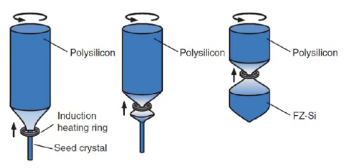 도가니가 따로 존재하지 않기 때문에 불순물이 Czochralski 방식에 비해 적습니다.