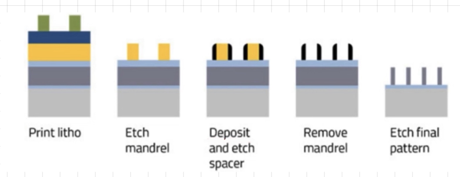 SADP의 경우 spacer 박막을 증착하고 식각하는 과정이 필요해 공정 난이도가 높아진다는 단점이 존재합니다.