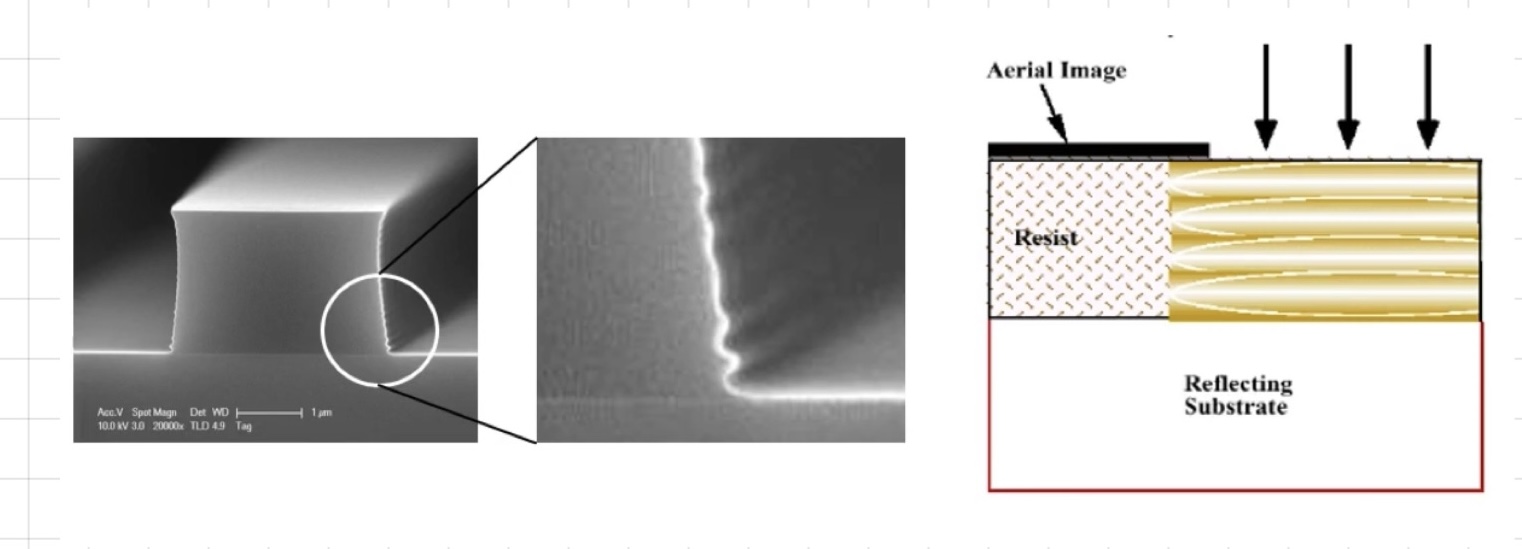 빛을 가해줄 때 반사되는 빛과 조사되는 빛이 서로 상쇄/보강 간섭이 발생하여 정상파가 만들어지면 빛의 intensity가 높고 낮음이 반복되어 PR이 울퉁불퉁하게 남게 됩니다.