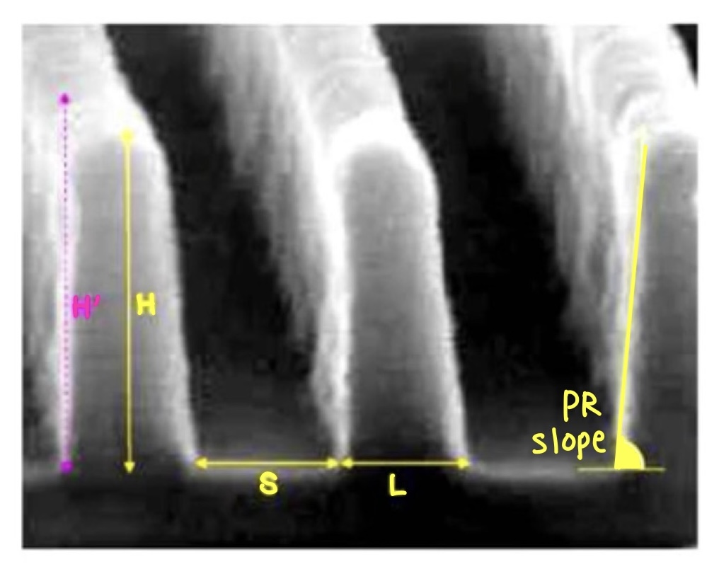 반대로 negative PR은 resolution은 떨어지고 패턴의 쓰러짐이 발생한다는 단점이 있지만 하부층을 이루는 산화막과 접착도 특성이 우수하다는 장점이 있습니다.