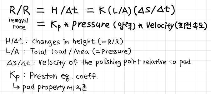 CMP의 연마속도는 압력과 회전 속도에 비례합니다.