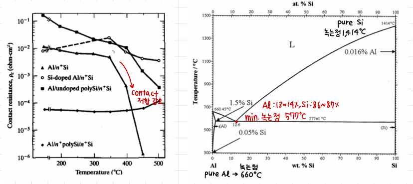 혹은 Al 증착 시 1%의 Si이 포함된 Al을 증착해 녹는점을 600 ℃ 정도로 높이는 방식이 있습니다.