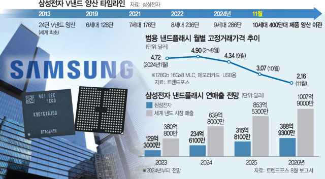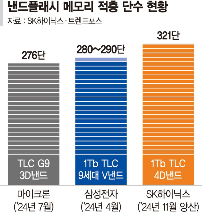 지난해 11월 SK하이닉스가 세계 최고 층수인 321단 낸드를 양산하기 시작했고, 삼성전자도 400단 이상의 낸드를 개발하고 있습니다.