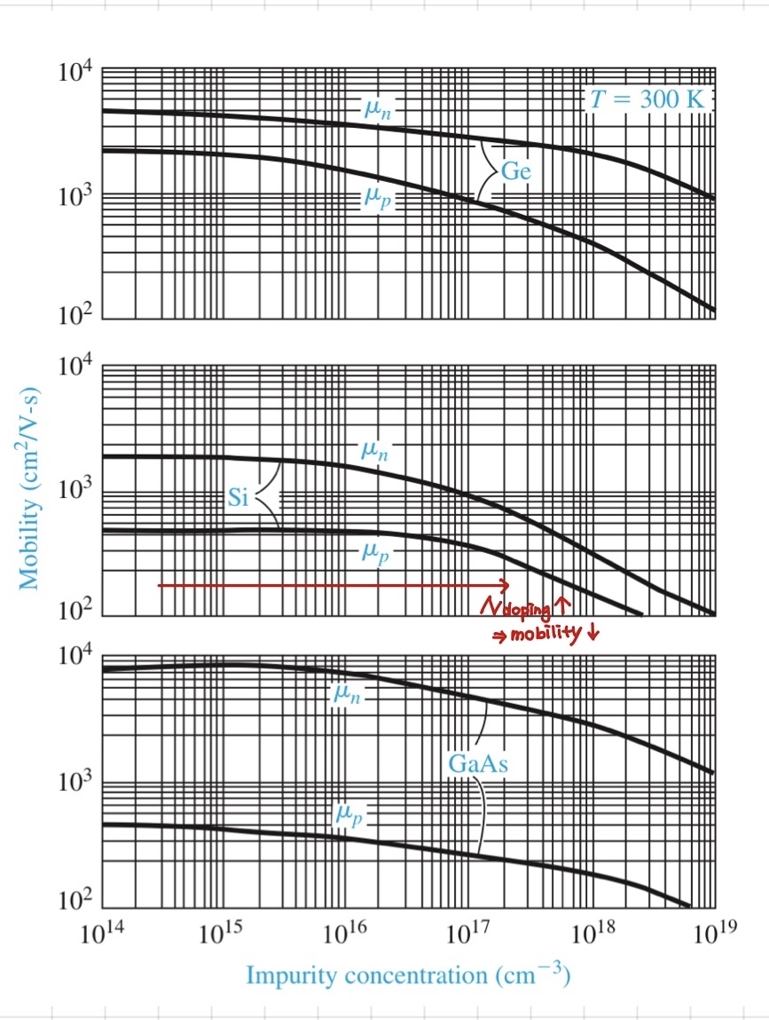 아래 그림은 도핑 농도에 따른 mobility를 보여줍니다.