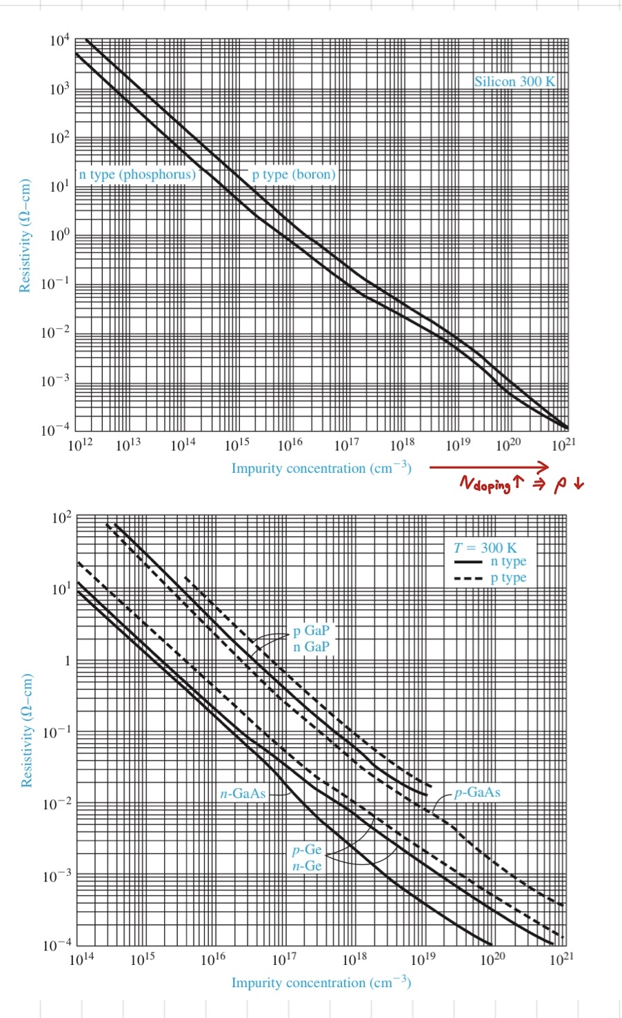 즉, 다음 그림과 같이 반도체의 resistivity는 불순물의 농도에 반비례하는 것을 알 수 있습니다.