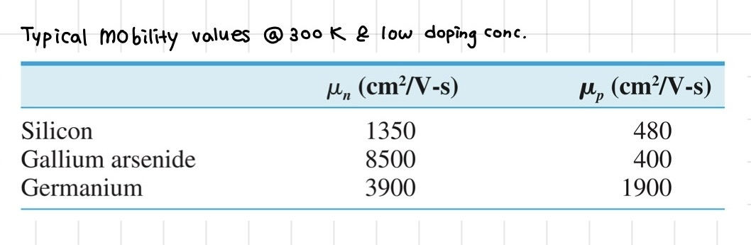 Carrier mobility는 아래와 같은 값을 갖습니다.